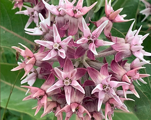 Asclepias speciosa je výrazná, vzpriamená trvalka s veľkými, sivasto-zelenými, plstnatými listami a nápadnými guľovitými súkvetiami. Kvety majú hviezdicovitý tvar, sú ružové až ružovo-fialové a vytvárajú bohaté, dekoratívne trsy. Rastlina pôsobí prirodzene, robustne a veľmi atraktívne počas celého leta.