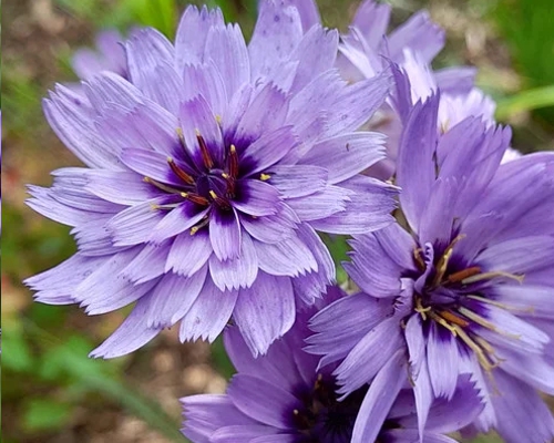 Catananche caerulea ‘Amor Blue’ je elegantná, vzdušná trvalka s jemným, prirodzeným charakterom. Vytvára prízemnú ružicu sivasto-zelených listov, z ktorej vyrastajú tenké, pevné stonky zakončené výraznými modrofialovými kvetmi s tmavým stredom. Kvety pôsobia ľahko a graficky, vznášajú sa nad listami a dodávajú výsadbe pohyb a jemnosť.