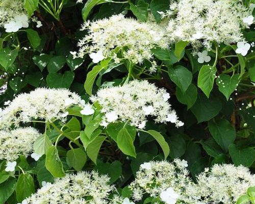 Rast je spočiatku pomalší, postupne sa zrýchľuje. Rastlina sa prichytáva pomocou príčepných korienkov a dokáže samostatne pokryť steny, múry alebo kmene stromov. Kvety sú ploché, biele, typické pre popínavé hortenzie a objavujú sa začiatkom leta.