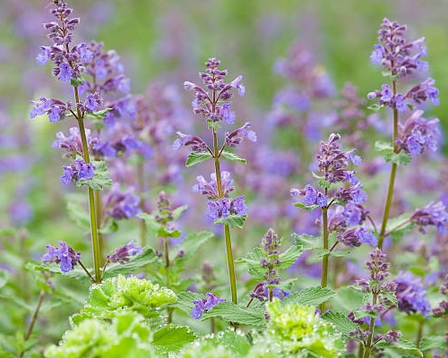 NEPETA CATARIA je aromatická, trváca bylina s prirodzene voľnejším, mierne rozložitým habitom. Vytvára sivasto zelené až zelené, jemne plstnaté listy so zúbkatým okrajom, ktoré po dotyku intenzívne voňajú. Počas leta kvitne drobnými bielymi až svetlo fialkastými kvetmi, ktoré sú usporiadané v riedkych klasoch. Rastlina pôsobí prirodzene, jemne vidiecky a veľmi dobre zapadá do bylinkových aj prírodne ladených výsadieb.
