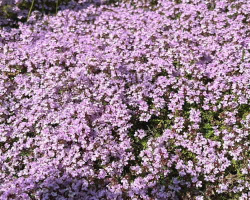 THYMUS SERPYLLUM je nízka, plazivá trvalka, ktorá vytvára husté, aromatické koberce drobných, tmavozelených listov. Pri dotyku uvoľňuje typickú, intenzívnu bylinkovú vôňu. V lete sa porast bohato pokrýva drobnými ružovými až purpurovými kvetmi, ktoré takmer úplne prekryjú listy. Rastlina pôsobí prirodzene, jemne a veľmi dekoratívne, najmä v kombinácii s kameňom alebo štrkom.